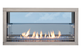 Light up outdoor living with the VRE4600 Series linear gas fireplaces. Flames dance on a bed of crushed glass while adjustable, full-spectrum LED lights enhance the mood or season. Weather-resistant stainless steel offers both durability and eye-catching appeal for outdoor spaces. The VRE4600 Series fireplace allows single-sided or optional see-through installation.
